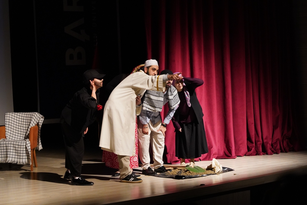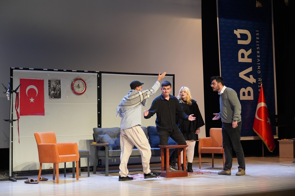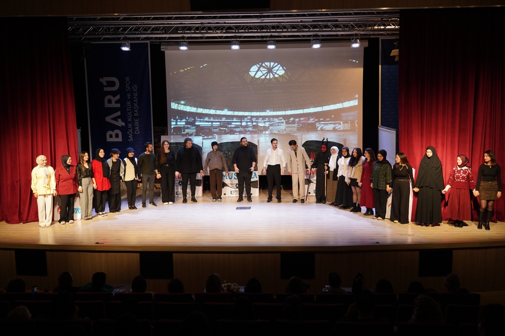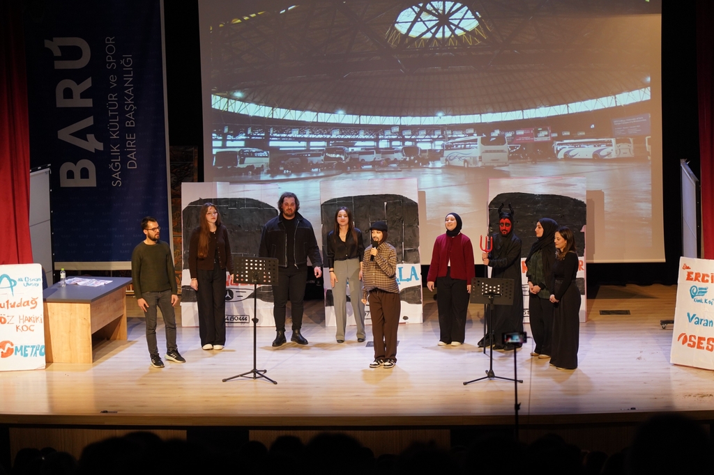 Eğitim Fakültesi Türkçe Öğretmenliği Programı’nın gelenekselleşen tiyatro şenliğinin dokuzuncusu 25 Aralık Perşembe günü düzenlendi. Eğitim Fakültesi Konferans Salonu’nda sahnelenen oyunlar büyük beğeniyle takip edildi. Şenlik kapsamında ilk olarak ilkokul öğretmeni Murtaza Bey’in etrafında gelişen olayları konu edinen “Paydos” oyunu sergilendi. Cevat Fehmi Başkut tarafından kaleme alınan oyunu sergileyen öğrencilerin performansları seyircilerden tam not aldı.