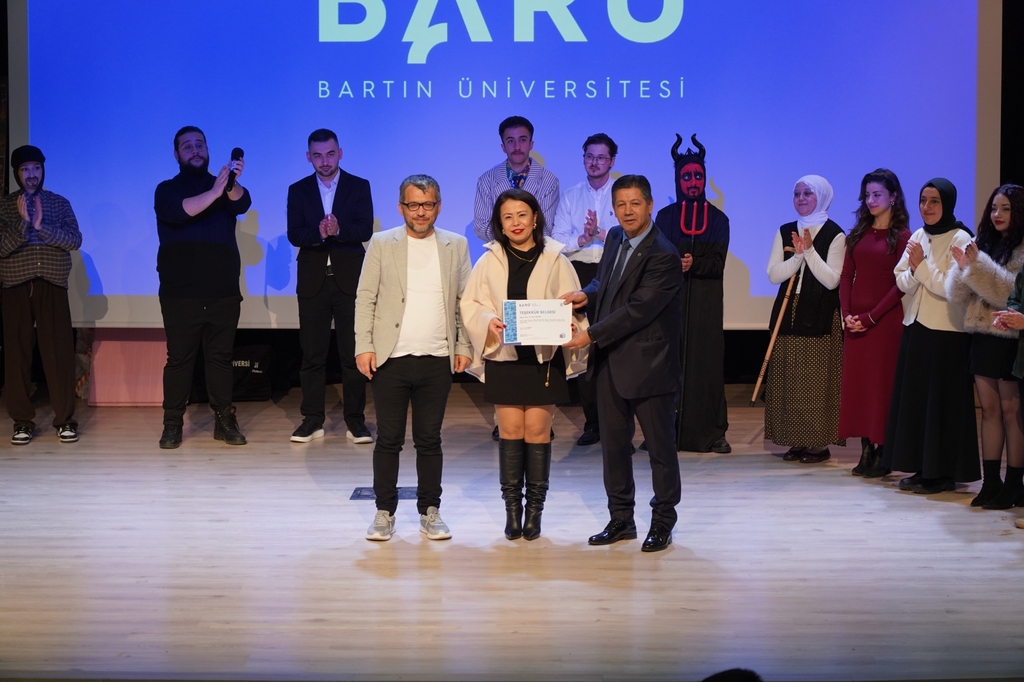 Şenliğin akabinde Eğitim Fakültesi Dekanı Prof. Dr. Çetin Semerci tarafından oyunların sahneye taşınmasına dek büyük bir özveriyle hareket eden Doç. Dr. Arzu Çevik’e teşekkür belgesi takdim edildi.